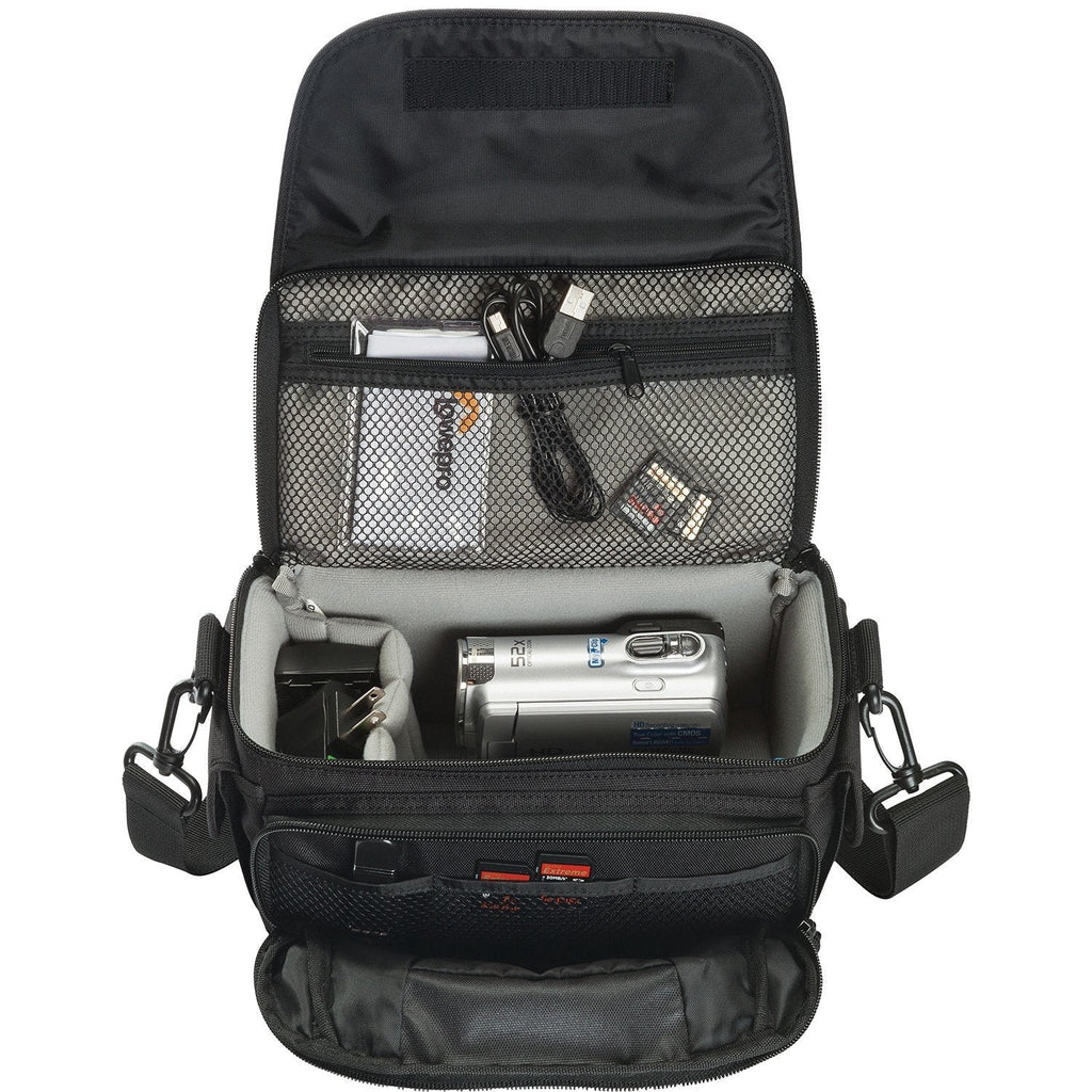 Fecho com dupla segurança tendo zíper com dois puxadores e tampo superior com fecho velcro de rápido acionamento. O revestimento interno possui acolchoamento em tricô macio para total proteção da sua filmadora. Divisórias internas ajustáveis. Repleta de bolsos para acessórios diversos. Alça de mão com pega almofadada para transporte confortável. A limpeza pode ser feita rápida e sem riscos de estragar o produto, apenas utilize escova e pano úmido. Resistente a água, foi todo desenvolvido com tecido composto por Nylon 840D e microfibra.