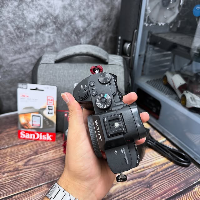 Modelo: Sony A7R III, mirrorless full-frame de 42,4 MP, com estabilização de imagem de 5 eixos e vídeo em 4K.