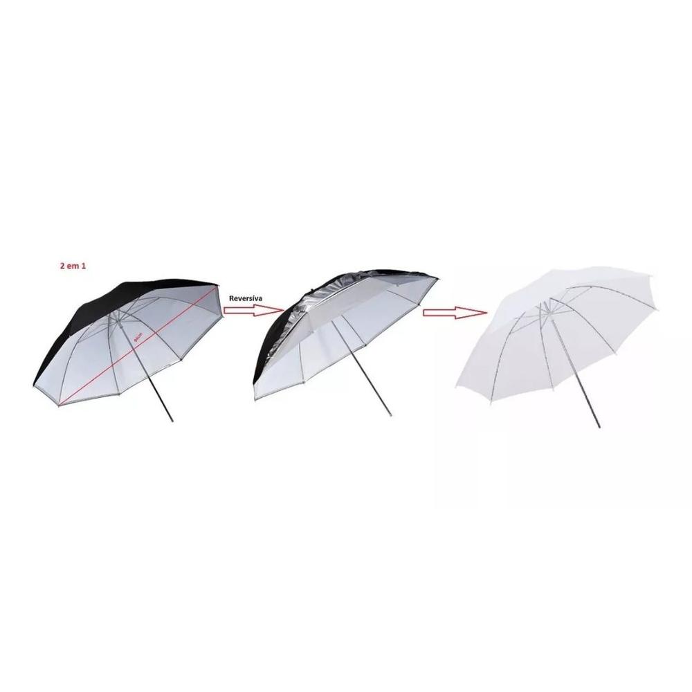 Material: hastes em metal com cobertura em triplo tecido de nylon nas cores branco, preto e prata